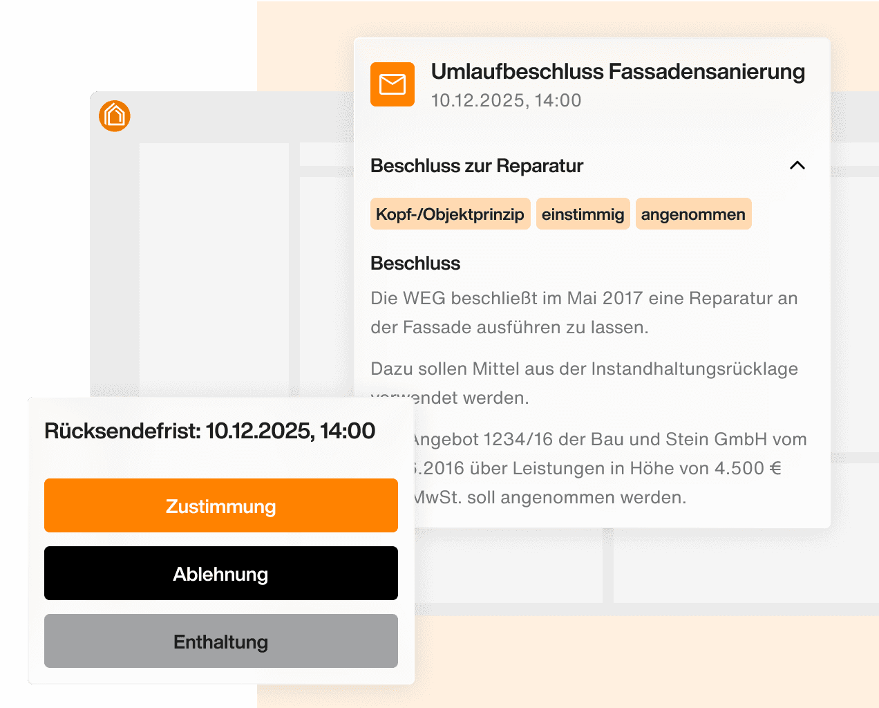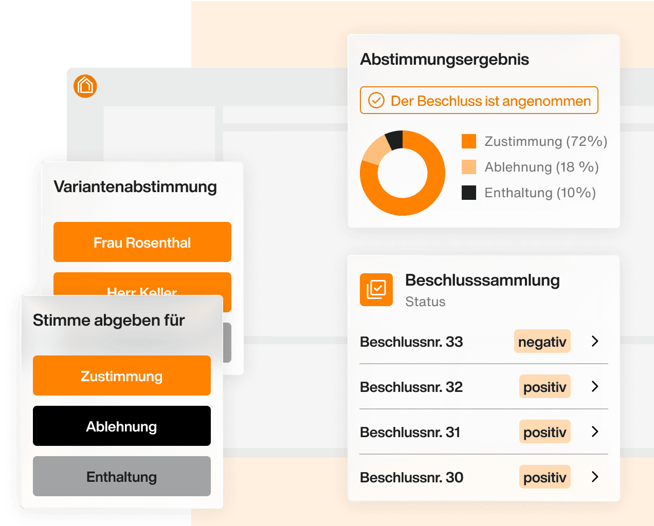 Erfassen Sie Abstimmungsergebnisse, erstellen Sie das Protokoll und die Beschluss-Sammlung. Informieren Sie die Eigentümer über die Ergebnisse.